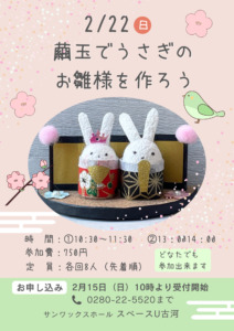 2/22(日)『繭玉でうさぎのお雛様を作ろう』を開催します