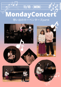 11/10(月)『MondayConcert~想い出のカーペンターズpart4~』を開催しました